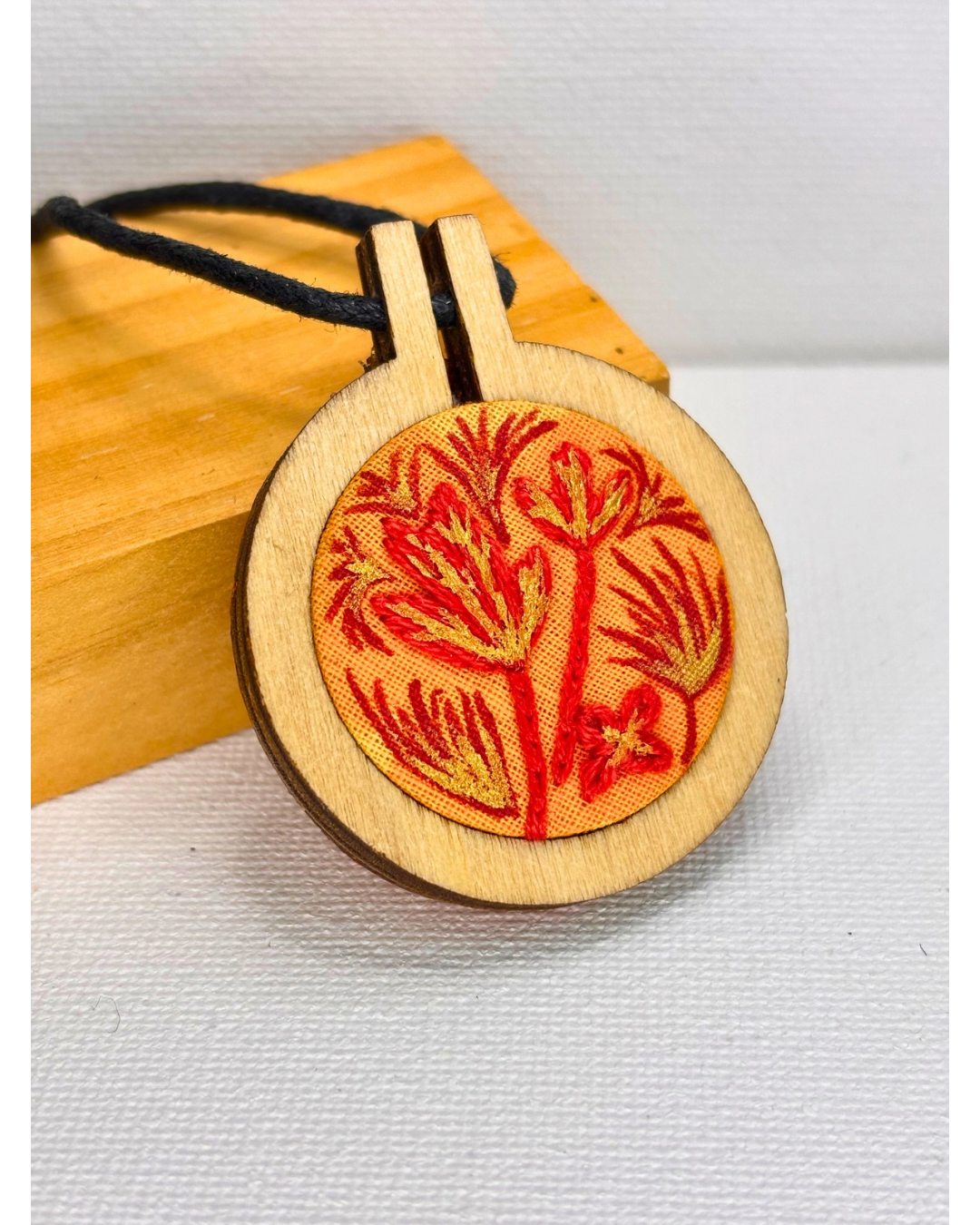 Bold, bright, and burning with energy! This mini hoop features vibrant red and gold wildflowers stitched onto a glowing orange background, bursting with warmth and movement. Delicate golden accents add just the right amount of shimmer, while the back blazes with a coppery resin finish packed with sparkle.