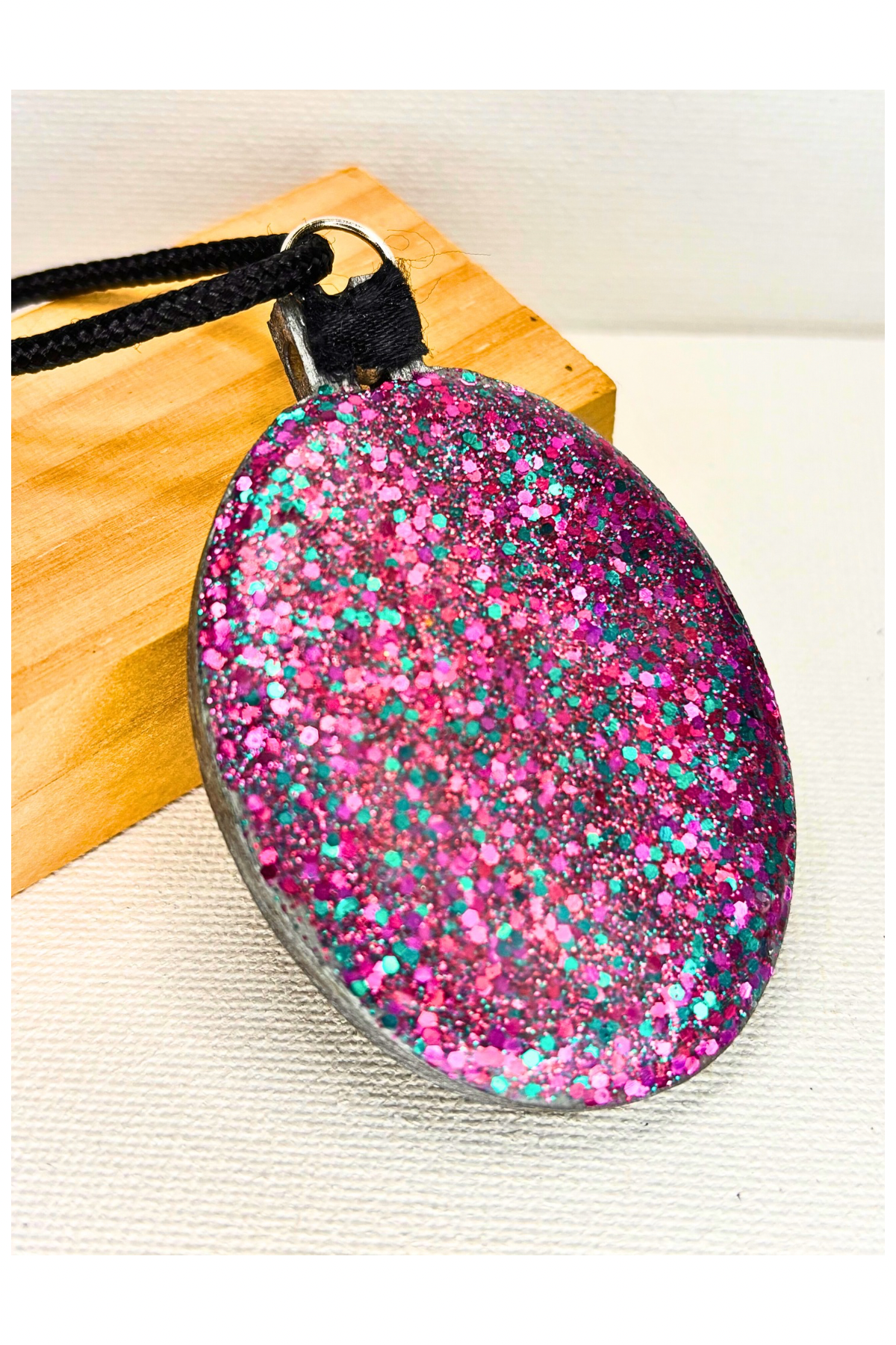Backed with resin and bright pink-and-green glitter for max sparkle