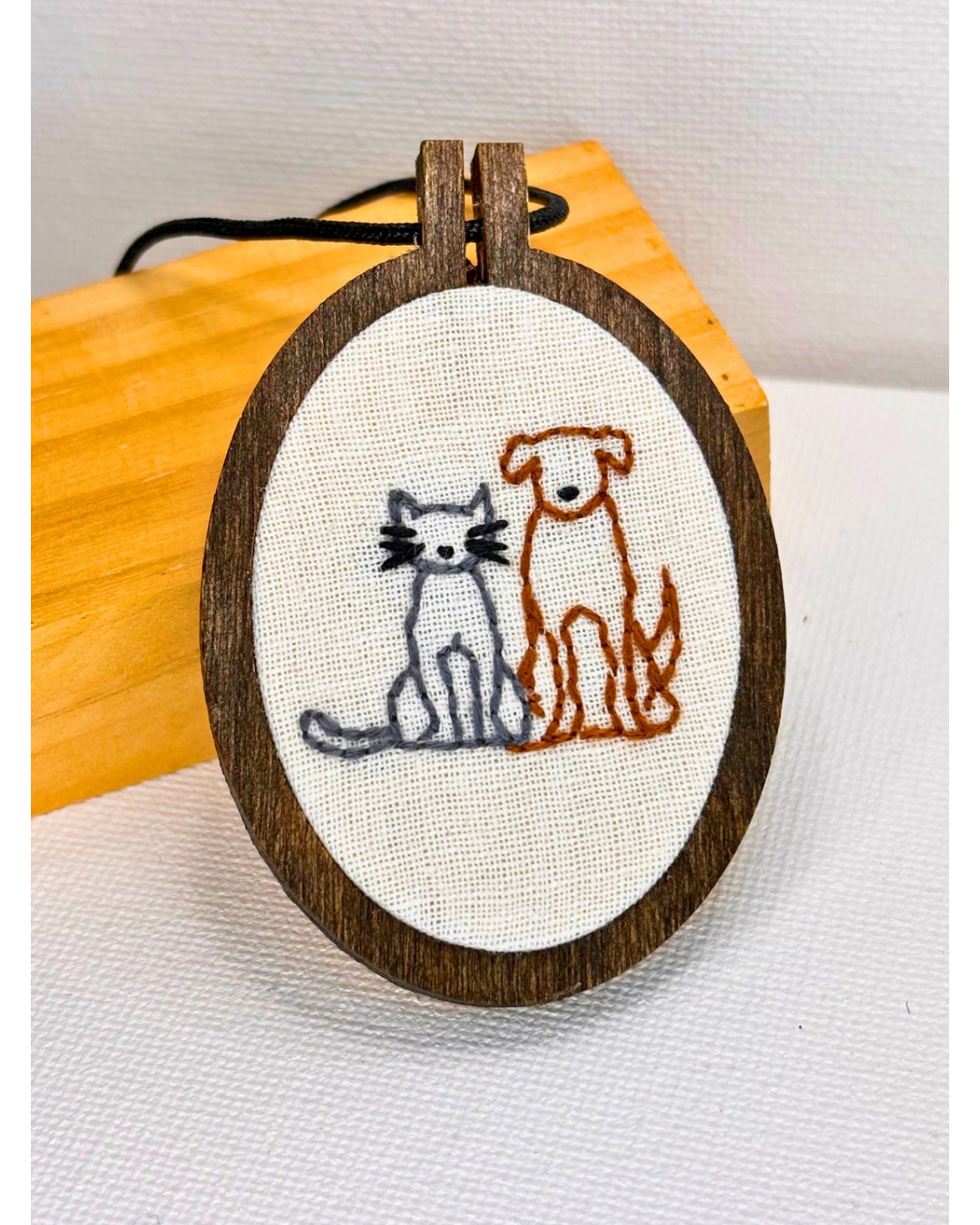 A sweet and simple tribute to the best kind of friendship- one stitched in love and loyalty. This charming mini hoop features a minimalist embroidered cat and dog duo, sitting side by side in perfect harmony. The cat is stitched in soft gray with bold black whiskers, while the dog sports warm brown thread, making an adorable, handcrafted piece that celebrates the bond between pets and their humans.
