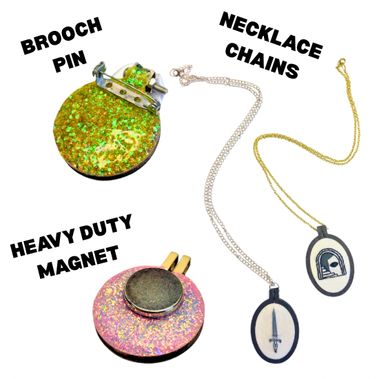 - Features: Lightweight, versatile, and easy to install—turn your art into wearable or functional flair in seconds. For brooch pin and magnet we recommend super glue, gorilla glue or E6000.