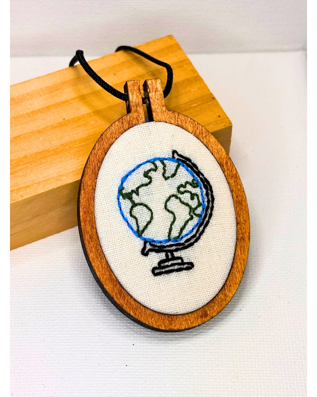 For the travelers, the dreamers, and the earth lovers- this mini embroidery hoop is a tiny tribute to our big, beautiful world! A hand-stitched globe sits atop a vintage-style stand, outlined in rich blues and greens. Flip it over, and you’ll find a mesmerizing cosmic-inspired backing, coated in deep blue and shimmering galaxy-like glitter. Whether you’re a wanderer at heart or just love a little celestial magic, this piece is made to inspire.