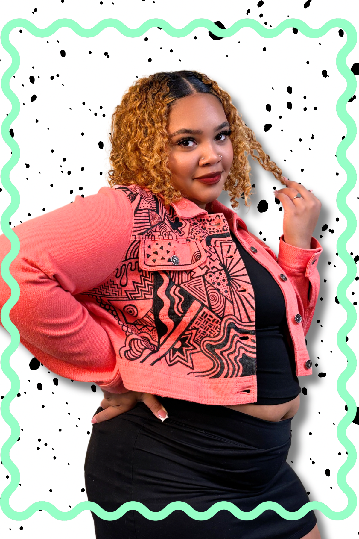 Doodle Daydream Hand Illustrated Crop Jacket - Size XL